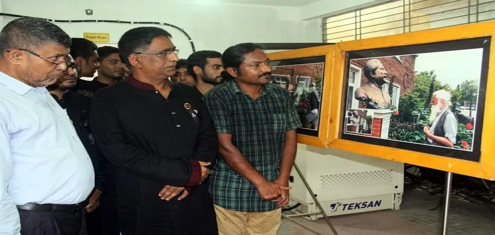 বিশ্ববিদ্যালয়ের ক্যাম্পাসে আয়োজিত চিত্র প্রদর্শনীতে বঙ্গবন্ধুর ভাস্কর্যের প্রতি বিদেশি নাগরিকদের সম্মান প্রদর্শনের ছবি নিয়ে ফোজিত শেখ বাবুর একক আলোকচিত্র প্রদর্শনী ফিতা কেটে উদ্বোধন করেন বিশ্ববিদ্যালেয়র উপাচার্য প্রফেসর ড. মো. নাছিম আখতার সহ শিক্ষকরা। পরে বিশ্ববিদ্যালয়ের শিক্ষক-শিক্ষার্থীদের সাথে নিয়ে প্রদর্শনীর ছবি দেখেন উপাচার্য।